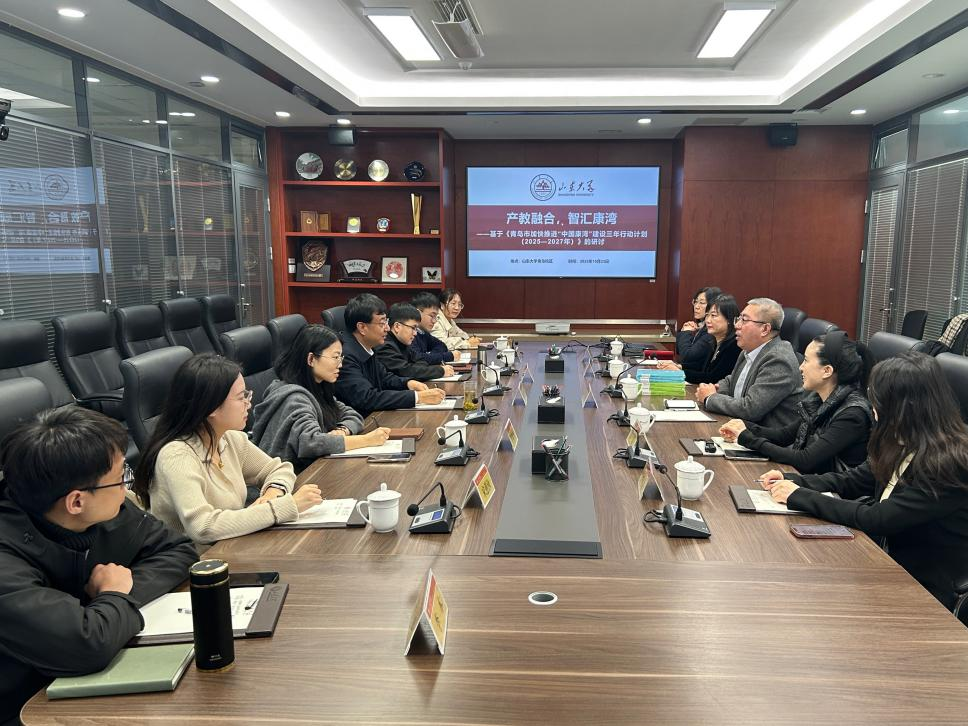 10月23日下午,“产教融合,智汇康湾——基于《青岛市加快推进‘中国康湾’建设三年行动计划(2025—2027年)》的专题座谈会”在山东大学青岛校区顺利召开。本次座谈会特邀中国医院协会医疗康复机构分会常务委员、青岛市仁者寿健康管理有限公司董事长张广善及其团队作专题报告与交流研讨。山东大学校长助理、生活质量与公共政策研究中心主任邢占军教授出席会议并致欢迎辞。山东大学生活质量与公共政策研究中心研究员武宜金、陈仁兴、李梦丹和社会保障专业博士生参与座谈。