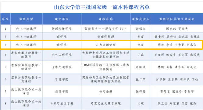 近日,教育部公布了第三批国家级一流本科课程认定结果,中心研究员李超主持的《人力资源管理》获评国家一流本科课程。该课程立足人力资源管理学科前沿动态与实践发展趋势,深度融合现代信息技术与教育教学规律,创新构建线上线下混合式教学体系。课程通过搭建多维度数字化学习平台,整合权威教材、行业案例、前沿论文等多元教学资源,打破传统课堂的时空边界,同时创设师生实时互动、小组协作研讨等多样化教学场景,有效激发学生自主学习与创新实践能力,实现理论教学与应用能力培养的有机统一。
